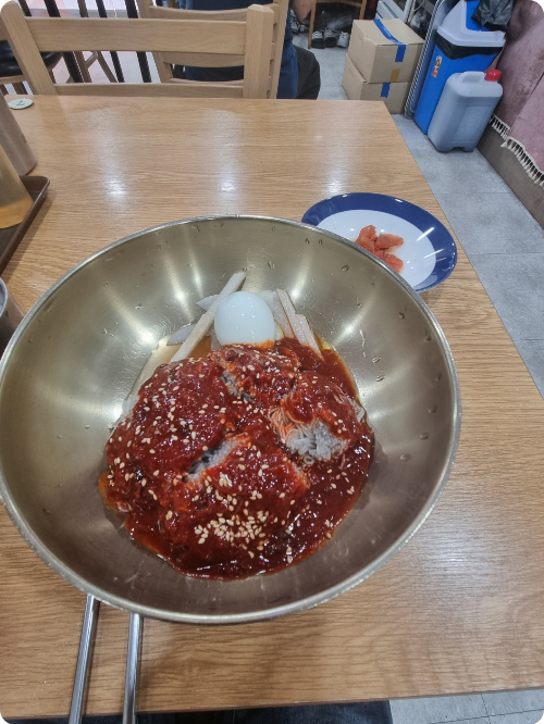제가 주문한 비빔 냉면 입니다. 다만 애들이 먹기에는 좀 매콤 하다는게 함정 입니다.