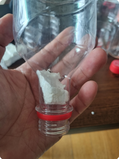밑에서 3번째 라인을 잘랐다면, 페트병 입구쪽이 바닥에 거의 붙을 정도가 될겁니다.