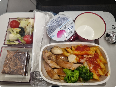 가는 도중에 기내식 한컷... 치킨파스트.... 근데... 옆에 있는 빵이 훨신 맛있다는 ㅋㅋ