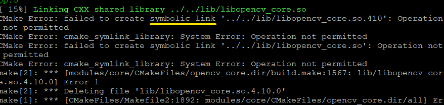 이는 soft link 실패에 대한 error 인데, windows용 soft link와 linux의 soft link는 차이가 있기 때문 입니다.