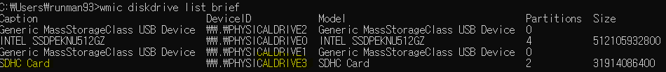 위 그림에서 보듯이 SD CARD의 DeviceID가 변경 되었습니다.